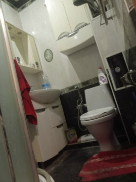 Квартира находится на 4-м этаже 9-этажного панельного дома. Она двухсторонняя: две комнаты раздельные, две — смежные. Санузел совмещённый, сделана перепланировка расширили площадь, установлены ванна, унитаз и биде.